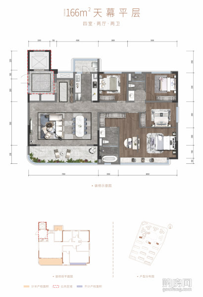 4室2廳2衛,大平層166平米(4室2廳,166平,南北)