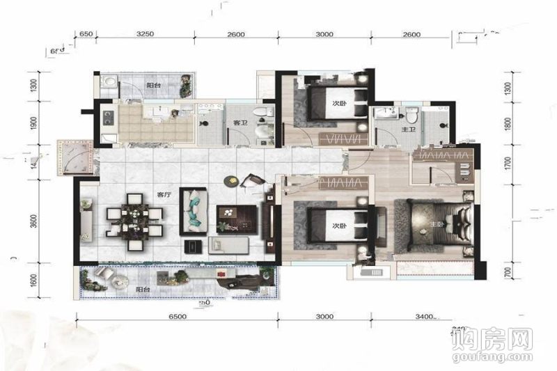 光明蓉府B戶型(3室2廳,128平,南北)