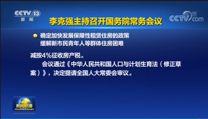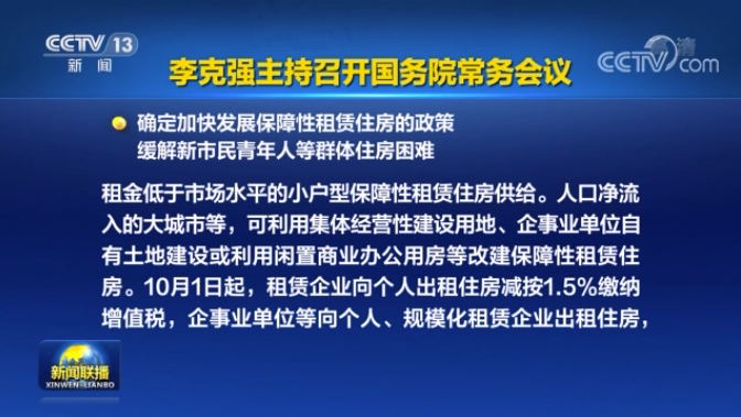 6月18日,國務(wù)院總理李克強(qiáng)主持召開國務(wù)院常務(wù)會議,決定從10月1日起,住房租賃企業(yè)向個人出租住房適用簡易計稅方法,按照5%征收率減按1.5%繳納增值稅;對企事業(yè)單位等向個人、專業(yè)化規(guī)模化住房租賃企業(yè)出租住房,減按4%稅率征收房產(chǎn)稅。