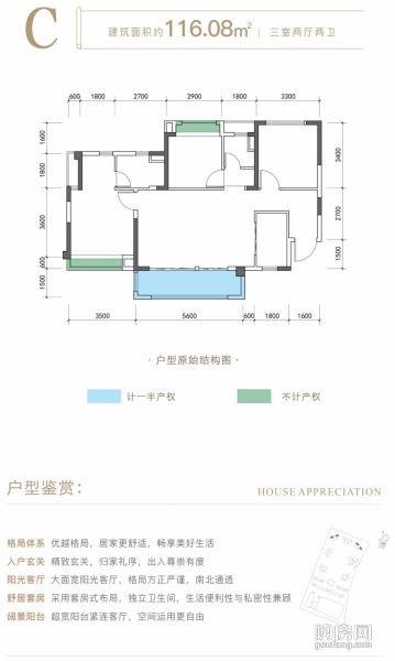 成都萬朵城C戶型(3室2廳,116.08平,南北)