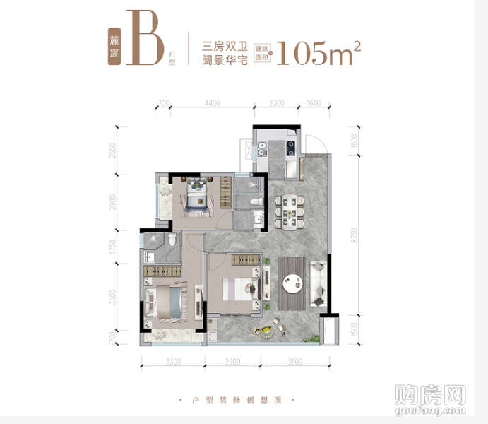 天府麓里B戶型(3室2廳,105平,南)