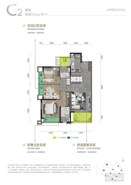 保利天空之城璟園C2戶型(3室2廳,103平,南北)