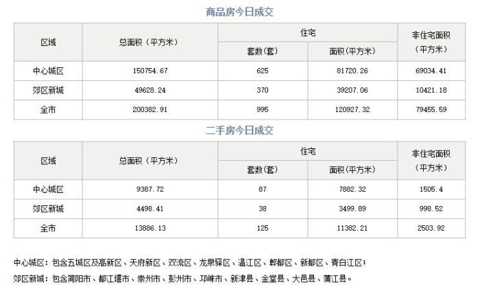 截至2021年6月30日17:40分,成都市全市商品房成交(備案)總面積200382.91平方米,其中其中商品住宅成交(備案)995套,商品住宅成交(備案)面積120927.32平方米。