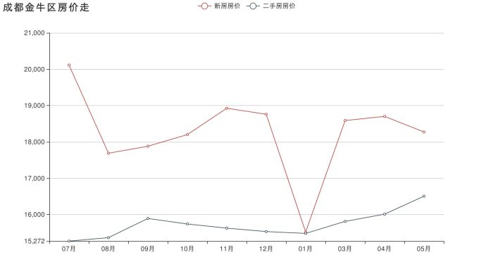 從購房網的數據對比我們不難發現,成都金牛區的價格在一級市場平均是18927元/㎡,對比上月是上漲的,上漲了3.98%;不考慮存量房市場的情況下,在售數量為75套,而在距離近的3個月之內,增加了0個個新開樓盤。