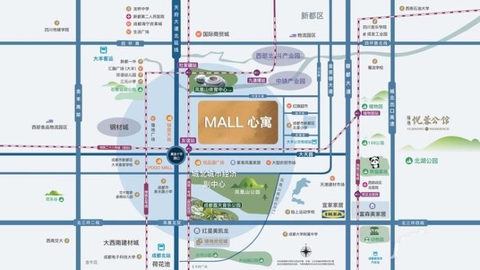 綠地成都綠地城是位于成都北3.5環大豐板塊打造的百萬方首席國際綜合體項目,地處成都北門廊位置,西側毗鄰成都唯一條出入城快速通道北新干線,驅車一環只需10分鐘。南側緊鄰北3.5環天豐路,順暢連接大豐生活區與天回金牛科技園。同時,地鐵一號線北延線友誼站口根據目前規劃,將在項目旁建設,交通將會更便利。區域內涵蓋蘇寧易購云、蘇寧極物、生鮮超市、影城、體育等自營業態,萬商云集,該項目能享一站式繁華城北。附近還有鳳凰山體育中心,大型賽事以及演唱會等,讓該項目煥發時尚活力的同時將帶來大量人流。