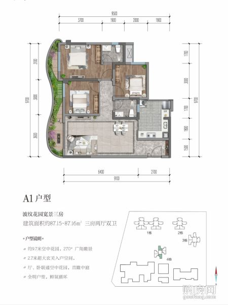 聯想天府云城C區A1戶型(3室2廳,87.15平,南)
