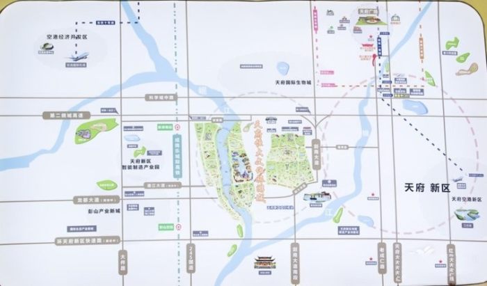 恒大文旅城位于岷東大道于劍南大道交匯處,目前區域內擁有三縱四橫的交通路網,還有地鐵5號線、地鐵6號線、地鐵11號線、K4/K2快線等多條地鐵線路通往天府新區文旅板塊,交通十分便利。天府恒大文化旅游城教育規劃用地14.2萬平方米,涵蓋幼兒園、小學、初中等,區域內將有近十所醫療機構進駐,教育、醫療配套都十分完善。除此之外,該項目還有一個最重要的IP扶持,恒大童世界,也是恒大集團為了做文旅地產而專門打造的一個IP,是全球唯一的全室內、全天候、全季節的童話神話樂園。