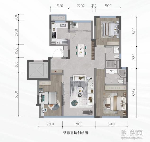 首開金地鷺鳴北湖-建面約115戶型(3室2廳,115平,南北)